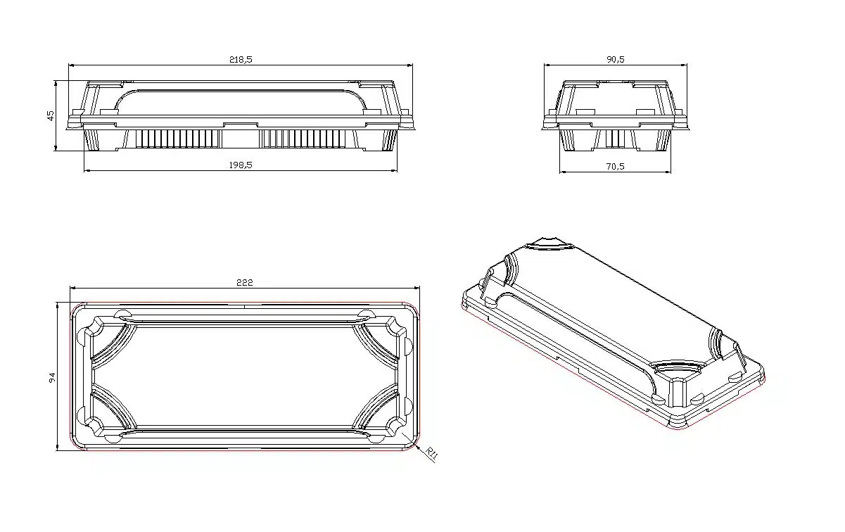 CASEROLA SUSHI + CAPAC (ST2) 218*90*20 mm 100 buc/ set