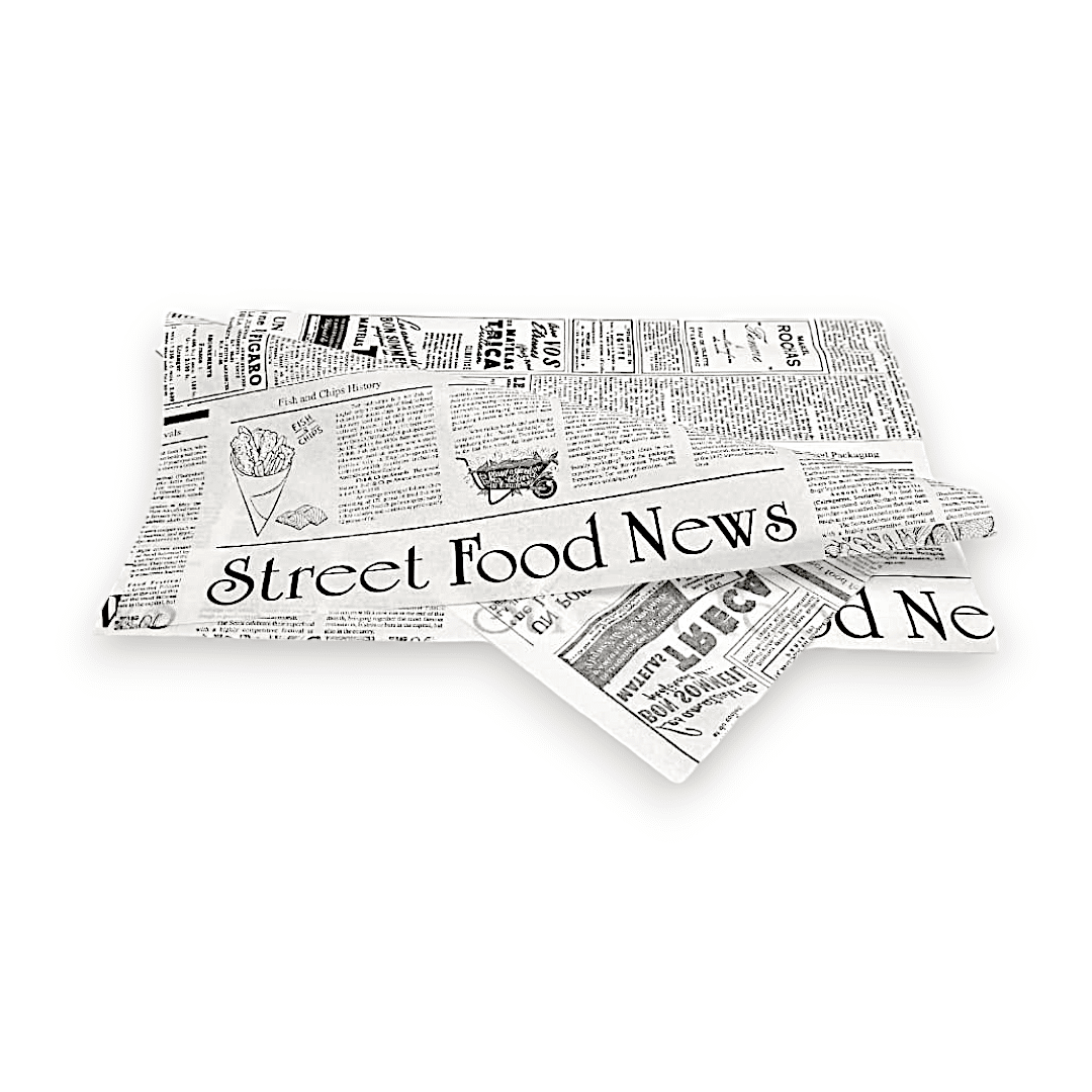 Hartia tip ziar are  dimensiune de 25x37cm, și reprezinta un mod eficient și comod pentru ambalarea și transportul preparatelor tip fast food, sandwich-urilor. Sunt recomandate atât magazinelor care comercializează aceste tipuri de produse, dar și utilizatorilor casnici.